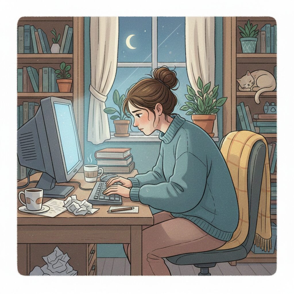 パソコン作業中も、後頭部を誰かに優しく上に引っ張られているようなイメージで、とにかく「首の後ろの詰まりを逃がして、ピンと上に伸ばす」ことを自分に言い聞かせました。